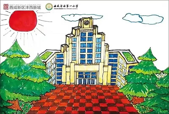在征集阶段,许多同学绘制的新城地标建筑各具特点,在丰富多样的色彩搭配中,展现了孩子们眼中别样的沣西之美。