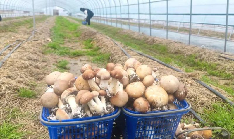这里的赤松茸,气温合适的时候,一年可以产两季,一季50亩,亩产2吨左右。每到鲜菇上市,市场上总是供不应求,也有不少人会前往基地亲自体验采摘乐趣。