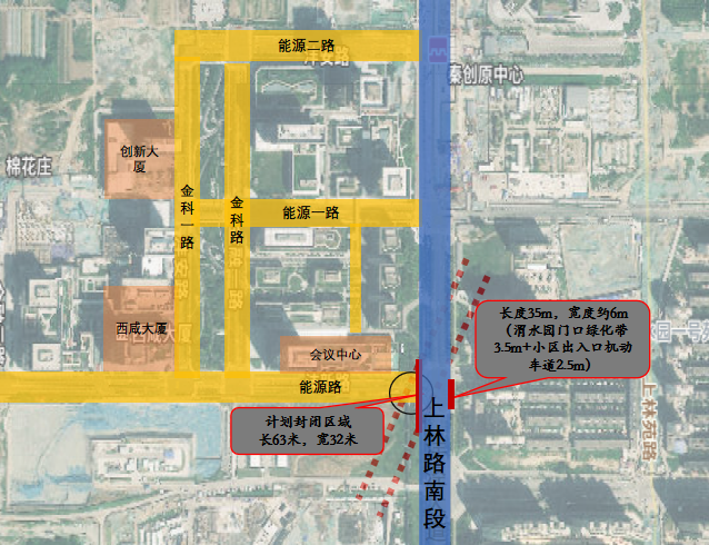 能源路与上林路(南段)十字西口临时封闭
