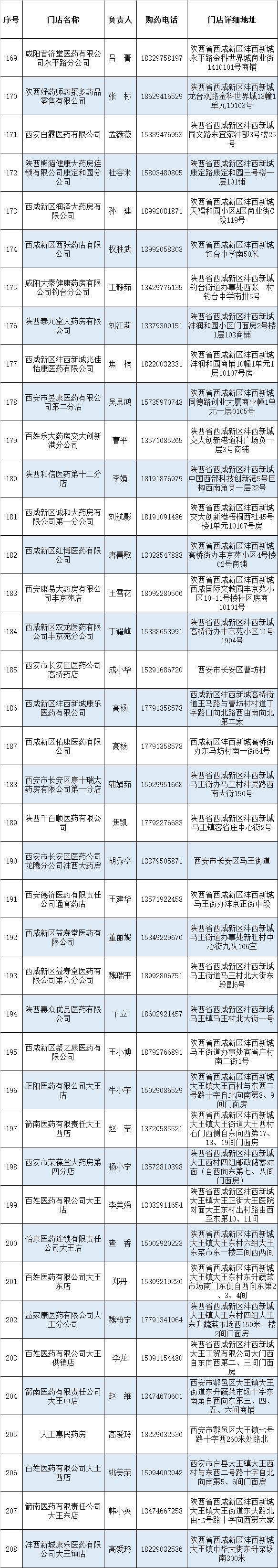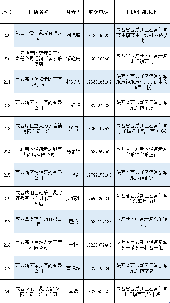 西咸新区疫情期间药品配送信息公示表