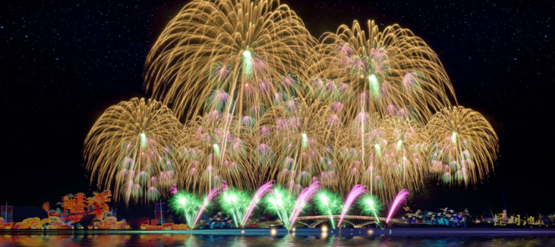 烟花映昆池,弄潮秦创原,2月5日,西咸新区元宵节焰火晚会与您相约昆明池畔,美丽的烟花,精彩的节目陪您共渡元宵佳节。