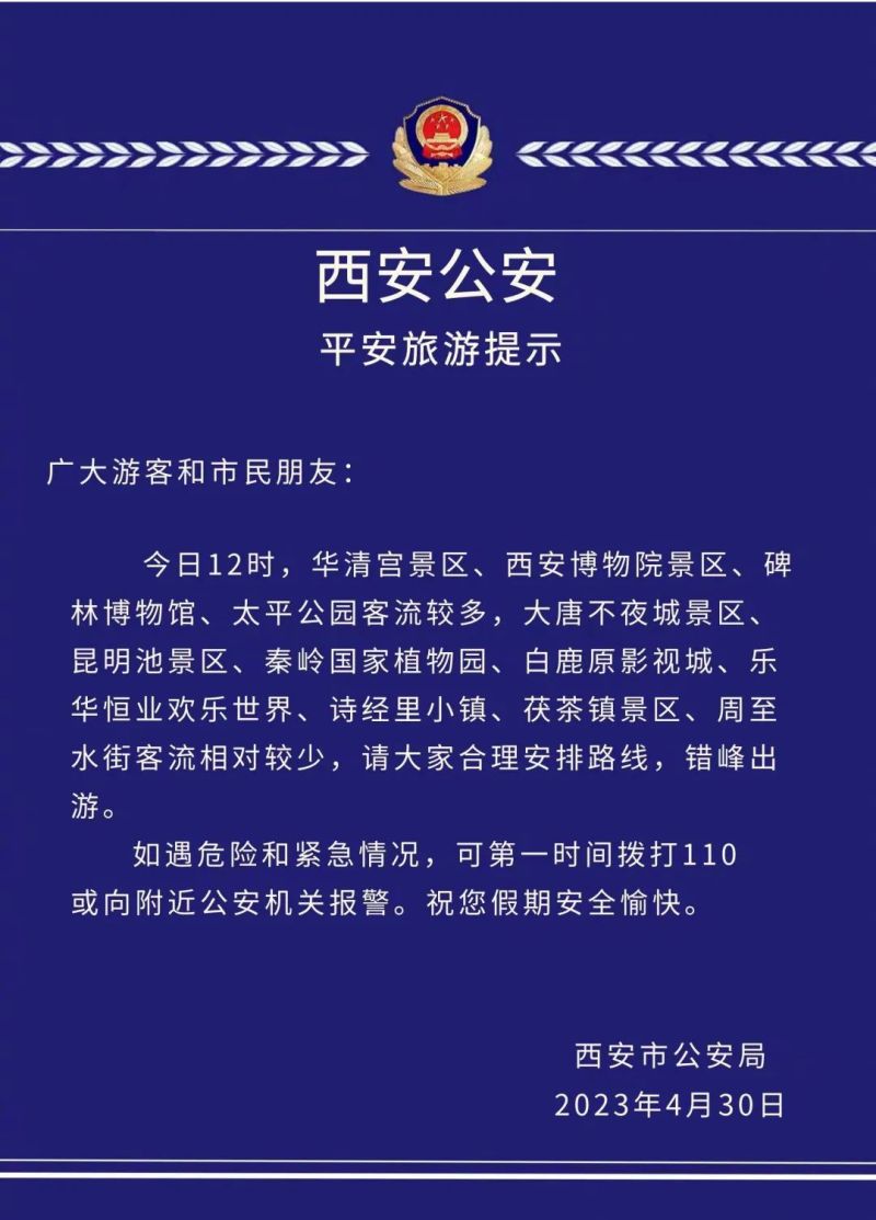 西安公安平安旅游提示