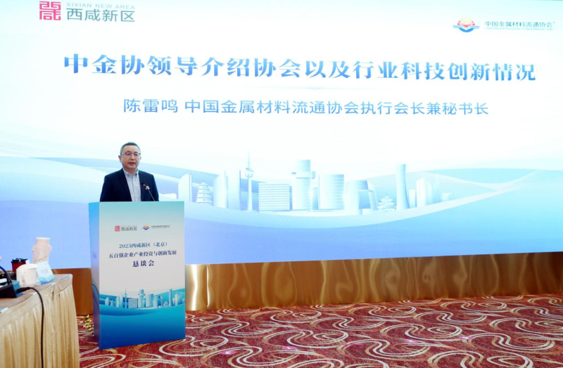 中国金属材料流通协会执行会长兼秘书长陈雷鸣对西咸新区所取得的发展成果表示认可与赞誉,他在致辞中介绍了中金协近年来在引领行业新技术、新事物、新领域、新理念等层面的八项工作,讲解了钢铁行业在推动科技创新进程中的重要作用,并介绍了中金协与各地区政府密切合作的创新举措。他认为,西咸新区已具备成为西部崛起和创新发展的新亮点、新名片、资源要素的汇聚地和增长地的优质条件,中国金属材料流通协会未来将为西咸新区产业发展提供更多支持,共同打造西部地区制造业产业新高地。