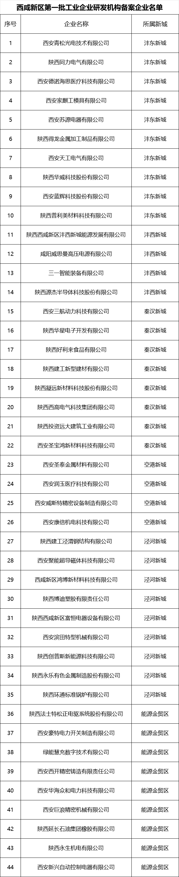 近日,陕西省工业和信息化厅公布了第一批工业企业研发机构备案企业名单,西咸新区44家入区企业成功入选。