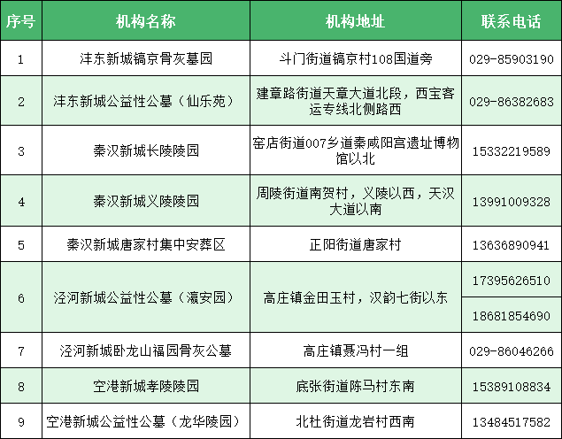 西咸新区公墓联系电话